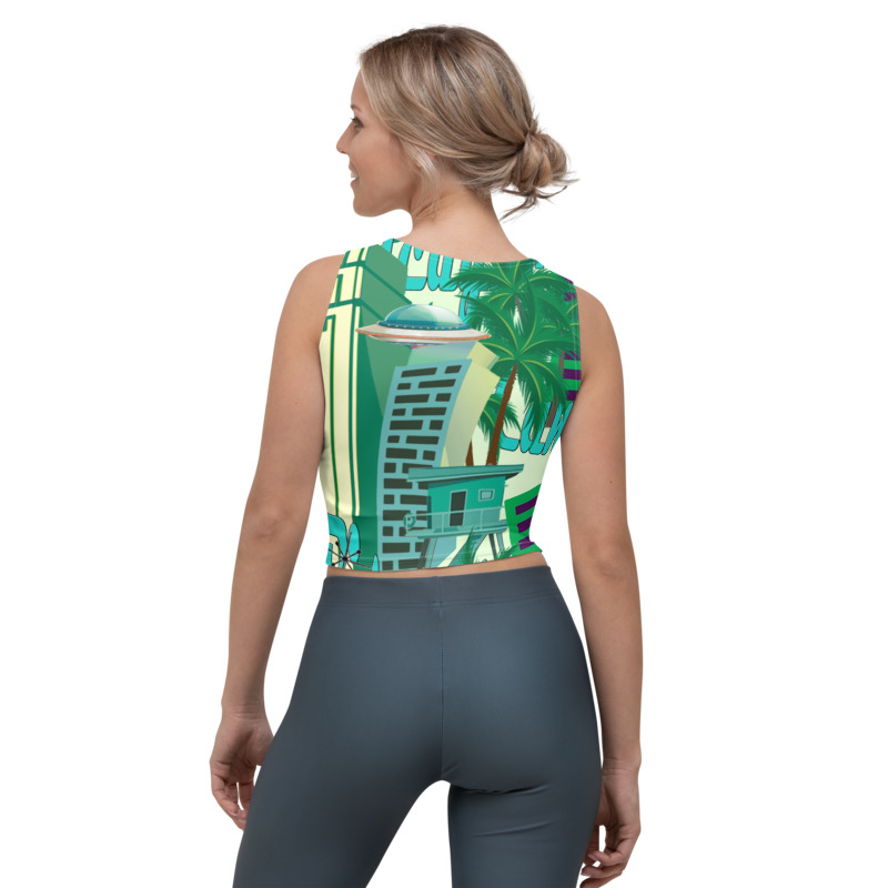 This body-hugging and comfortable All-Over Print Crop Top by CannaBiscayne, will be the centerpiece of any summer outfit! Great for summer activities. Show off those abs!